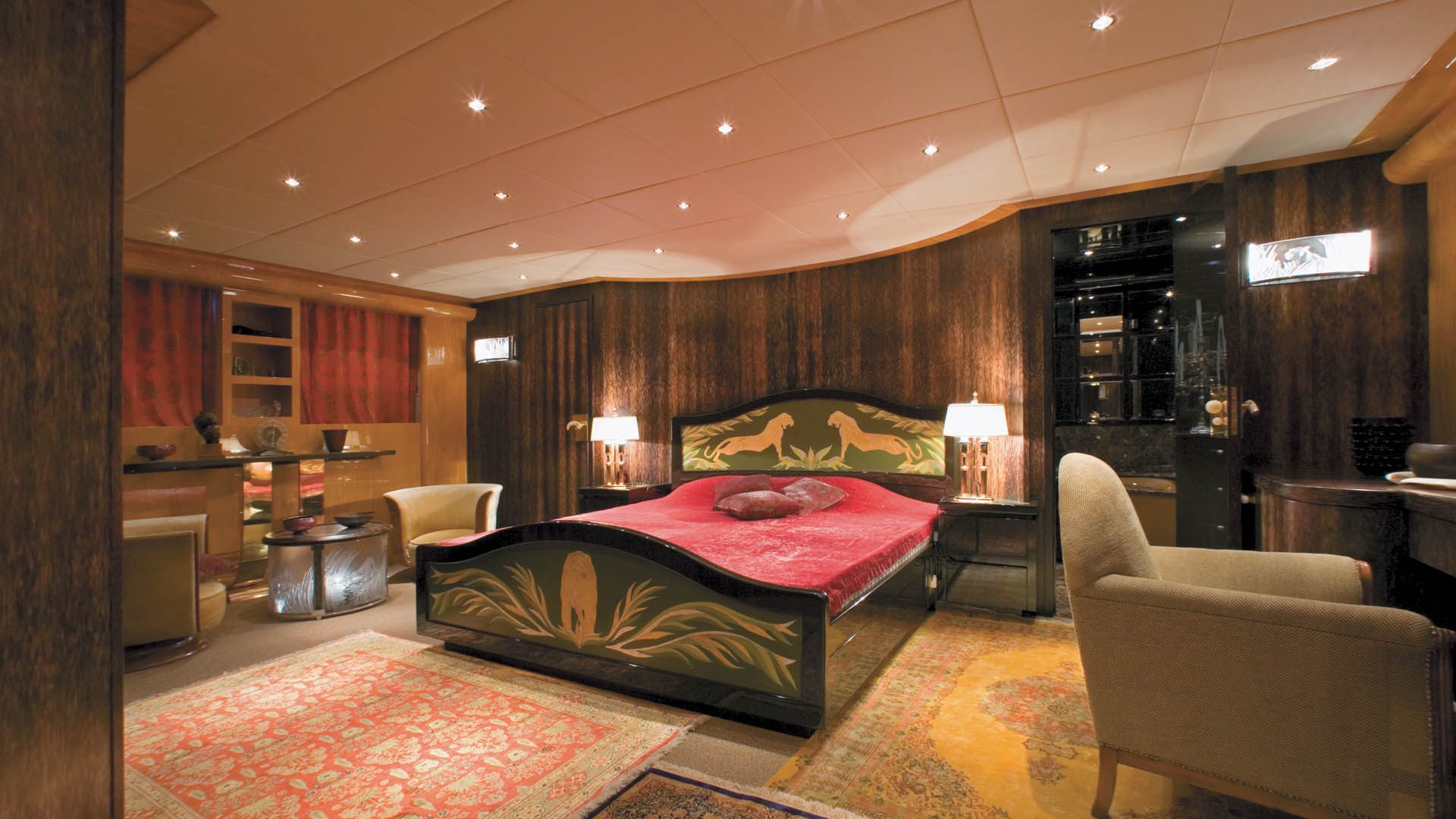 The exterior palette evokes the warm and evocative tones of the sun and desert, reflected in both walls and furnishings. Armchairs, sofas and a smoking table are authentic Art Deco pieces—symbols of the Owner’s passions for design and collecting—that enrich the yacht’s open-air settings with cultural depth and sophistication.