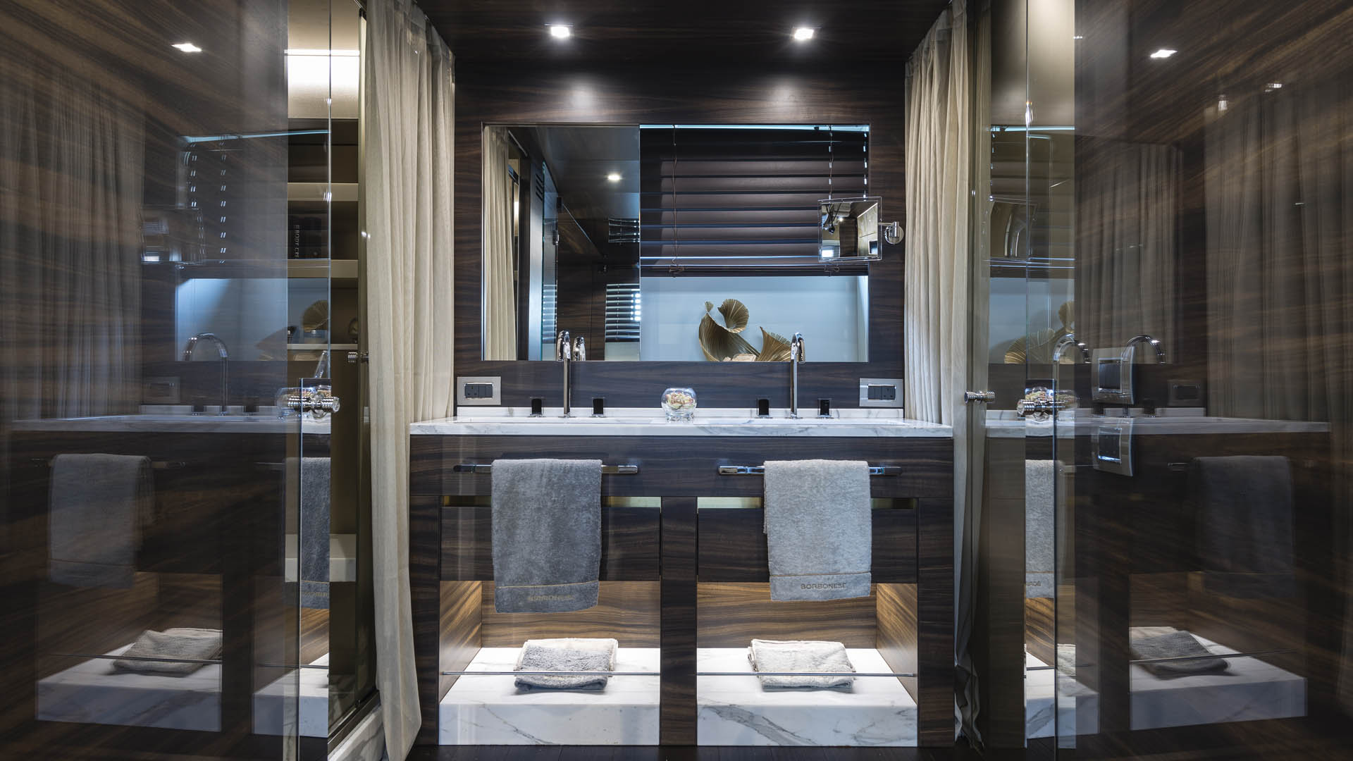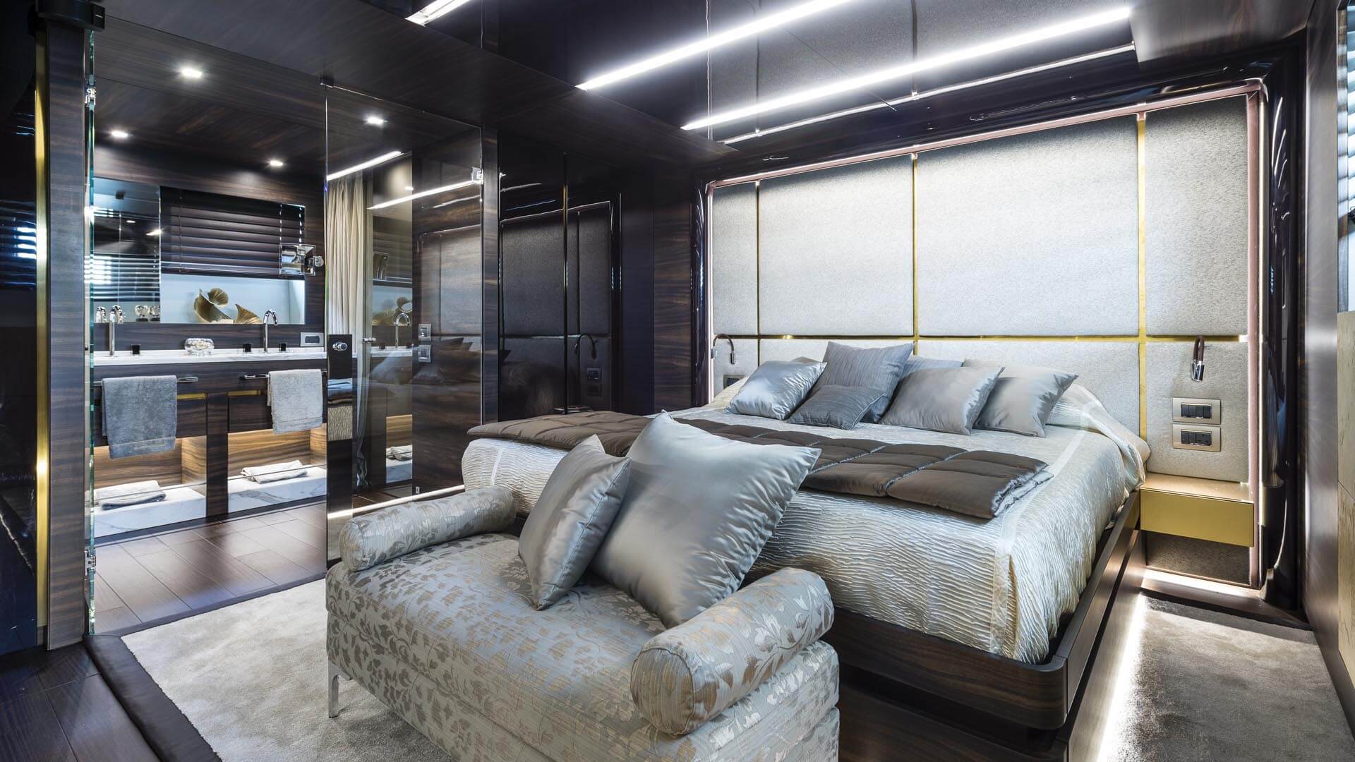 The lower deck accommodates eight guests across two double cabins, a refined VIP suite, and the full-beam Owner’s suite aft, each crafted with a sense of discreet elegance. Crew quarters are positioned forward, complete with private facilities and entirely separate access, ensuring privacy and efficiency at all times.