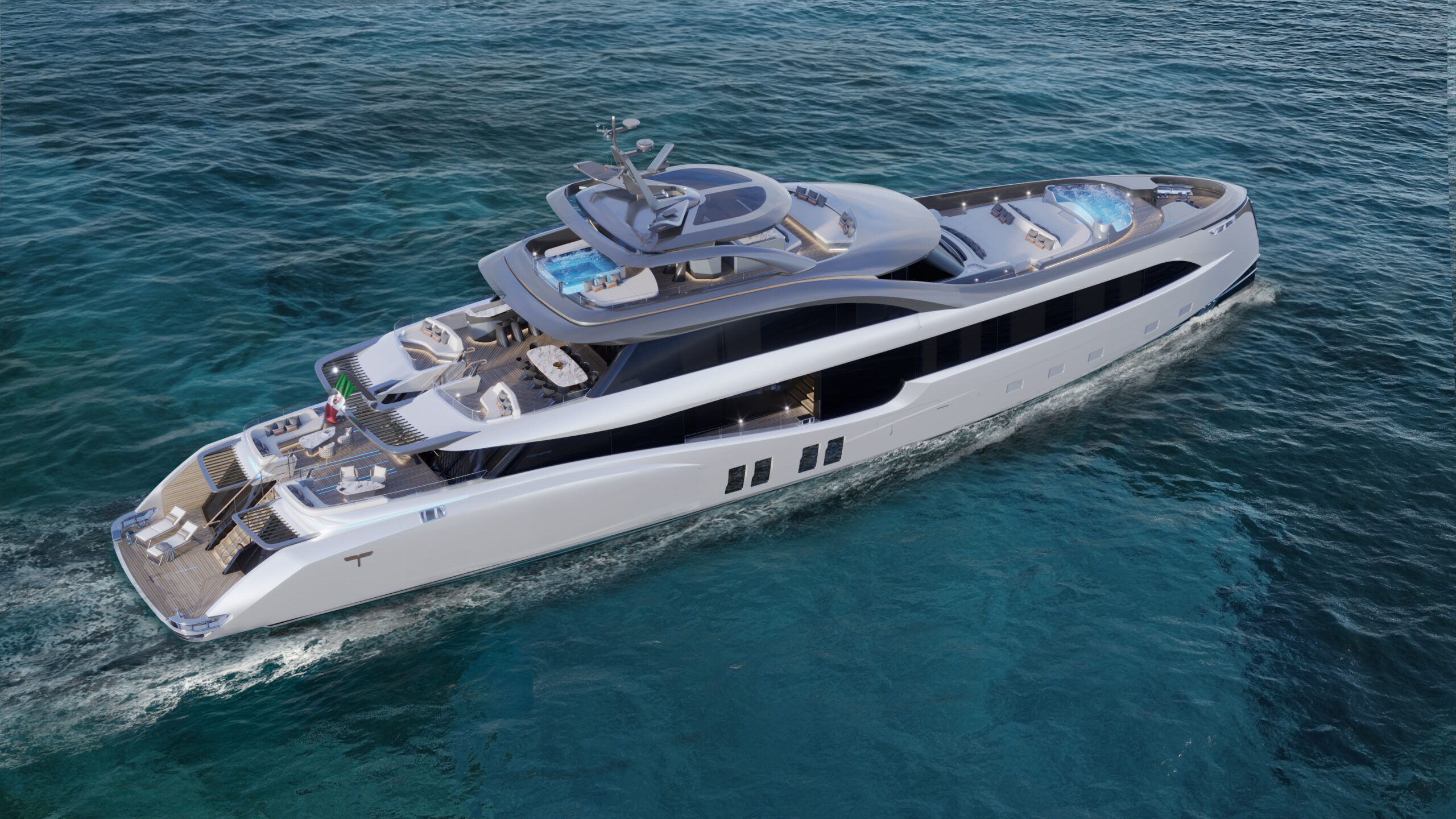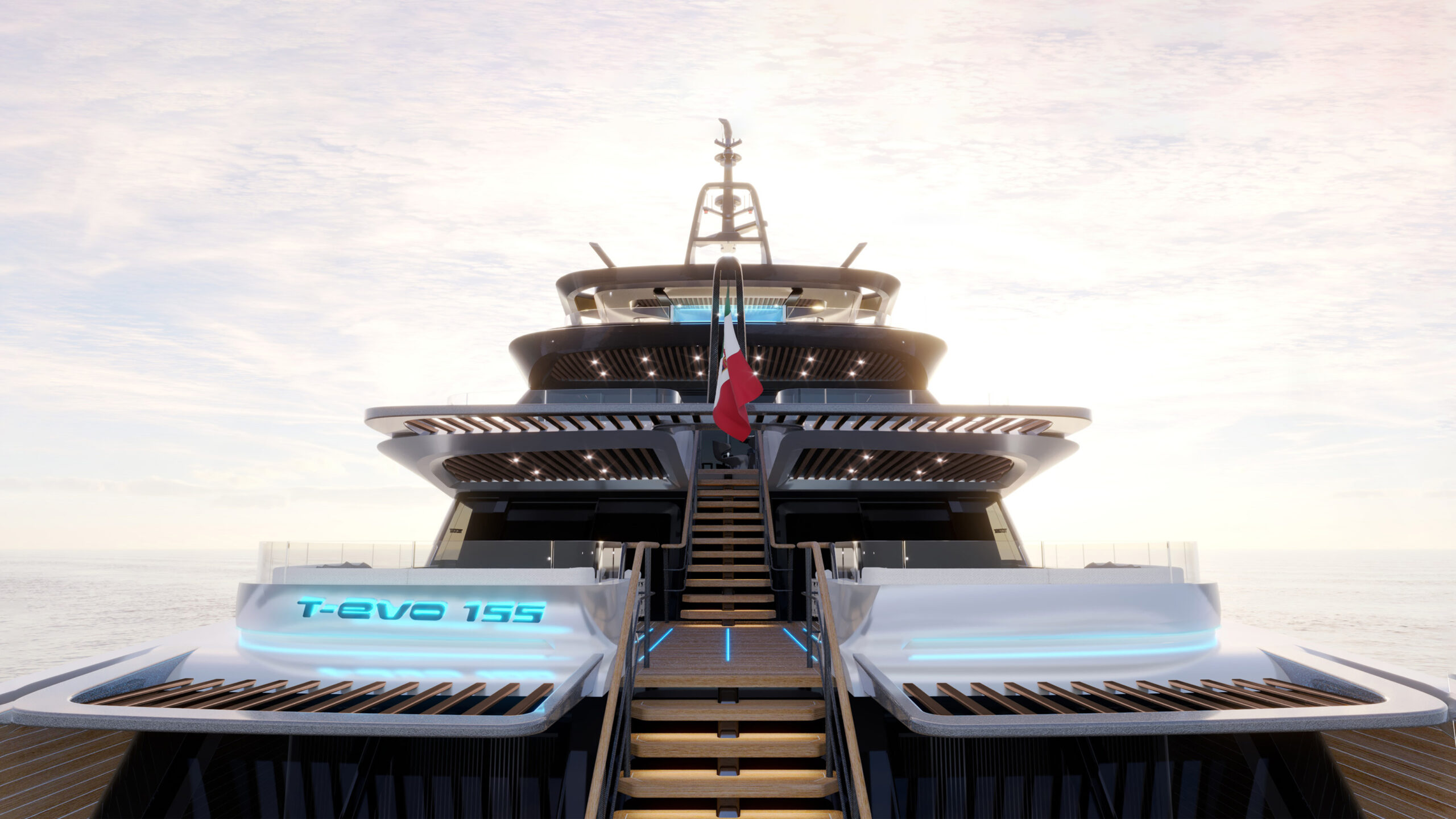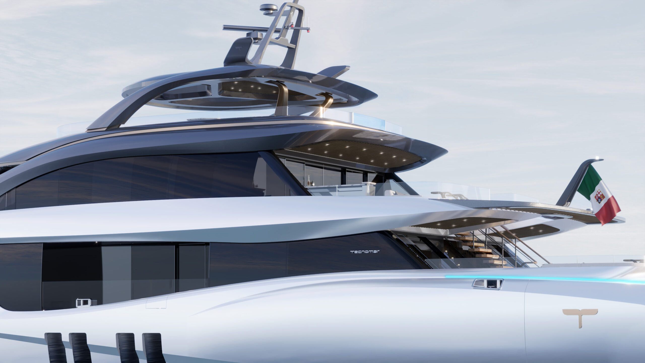 The EVO 155 extends the Tecnomar EVO line into a new dimension of power and presence. At 47 metres, she pushes boundaries, proving that size and performance can coexist without compromise. Strongly sporty, with sinuous lines and captivating geometry, she is conceived as a true stage of domination at sea.